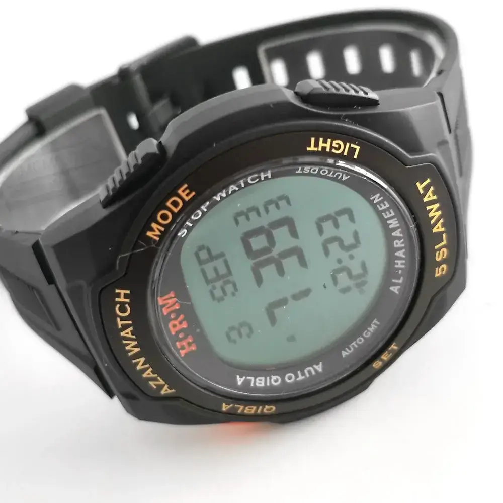 شاشة رقمية للوقت وأسفله توقيت الصلاة القادمة